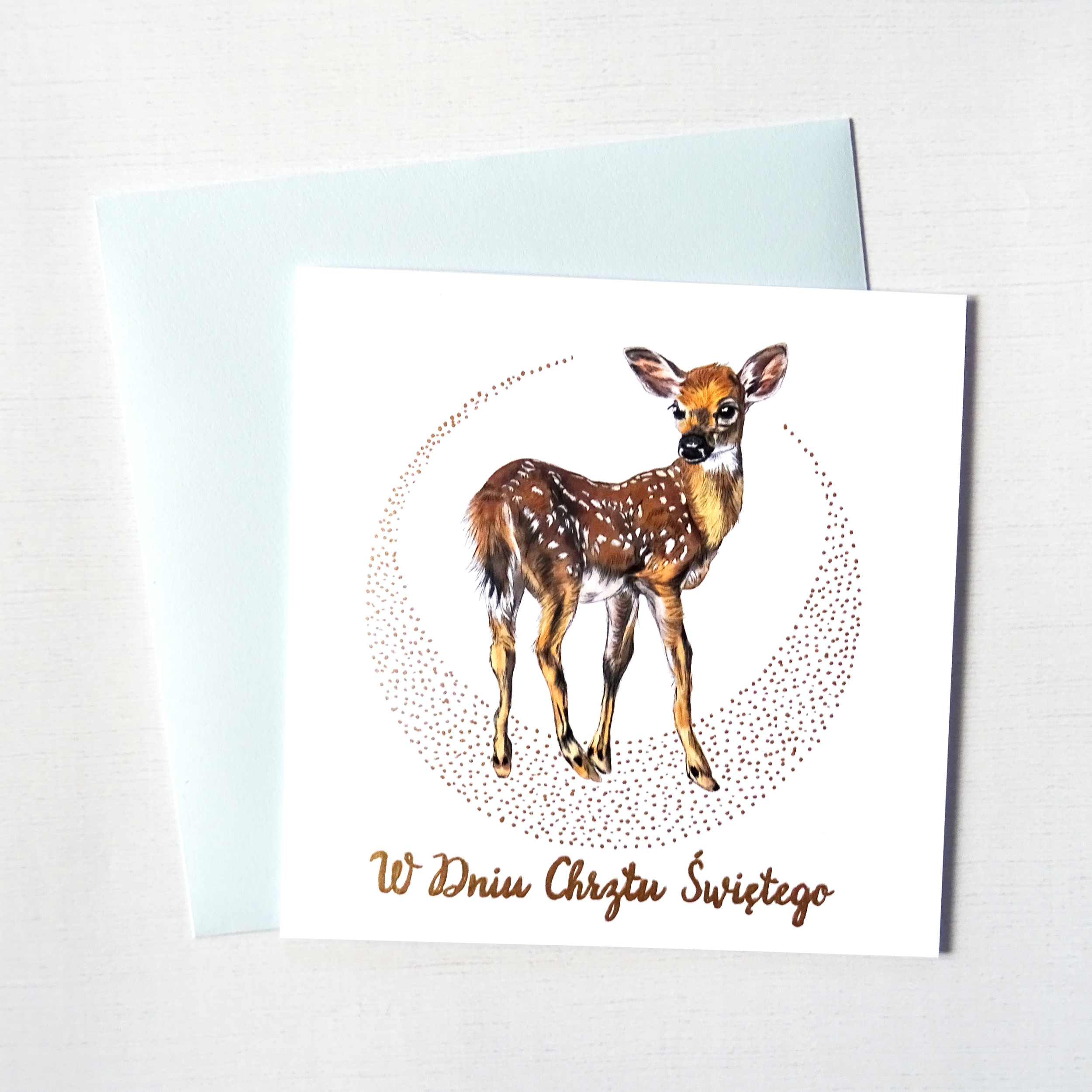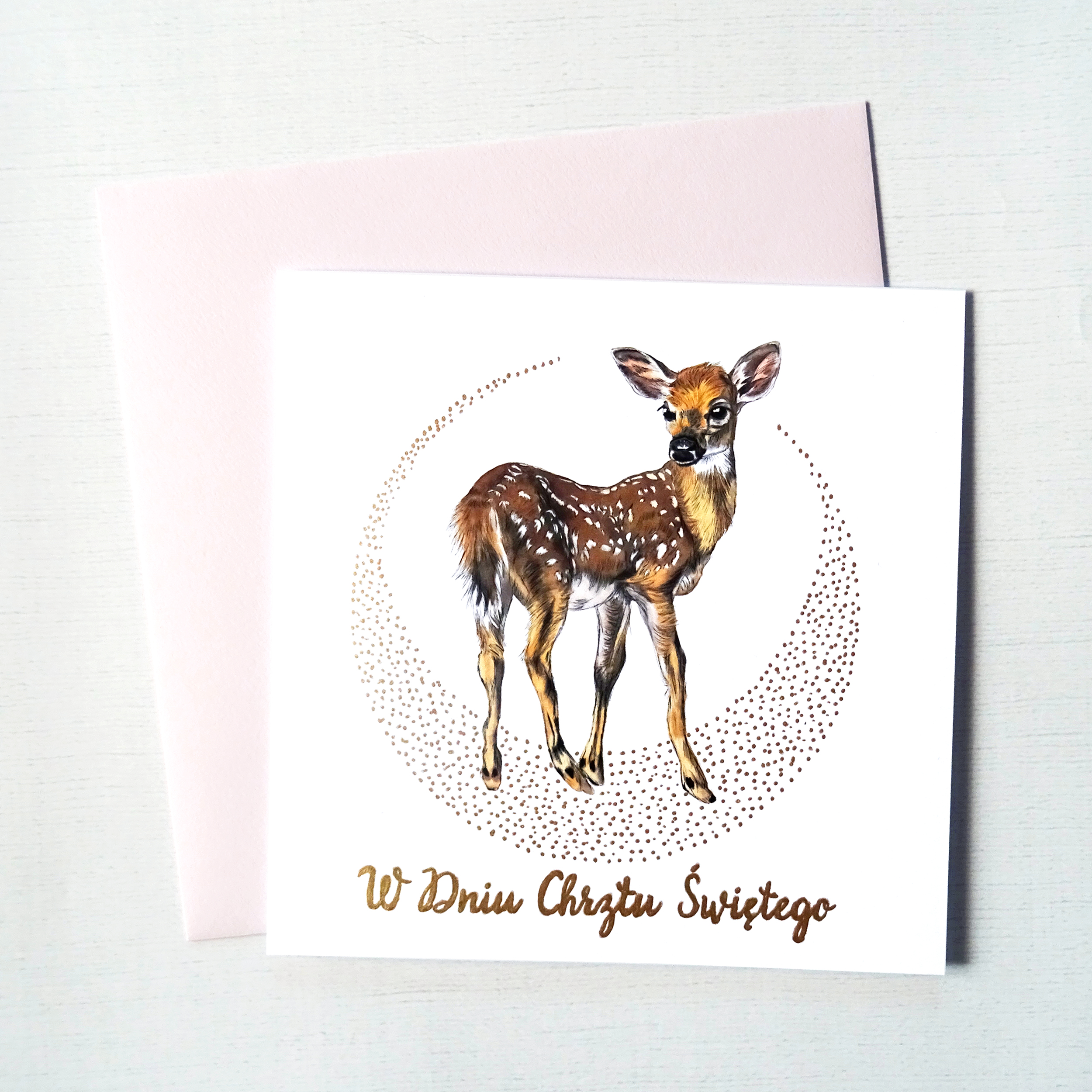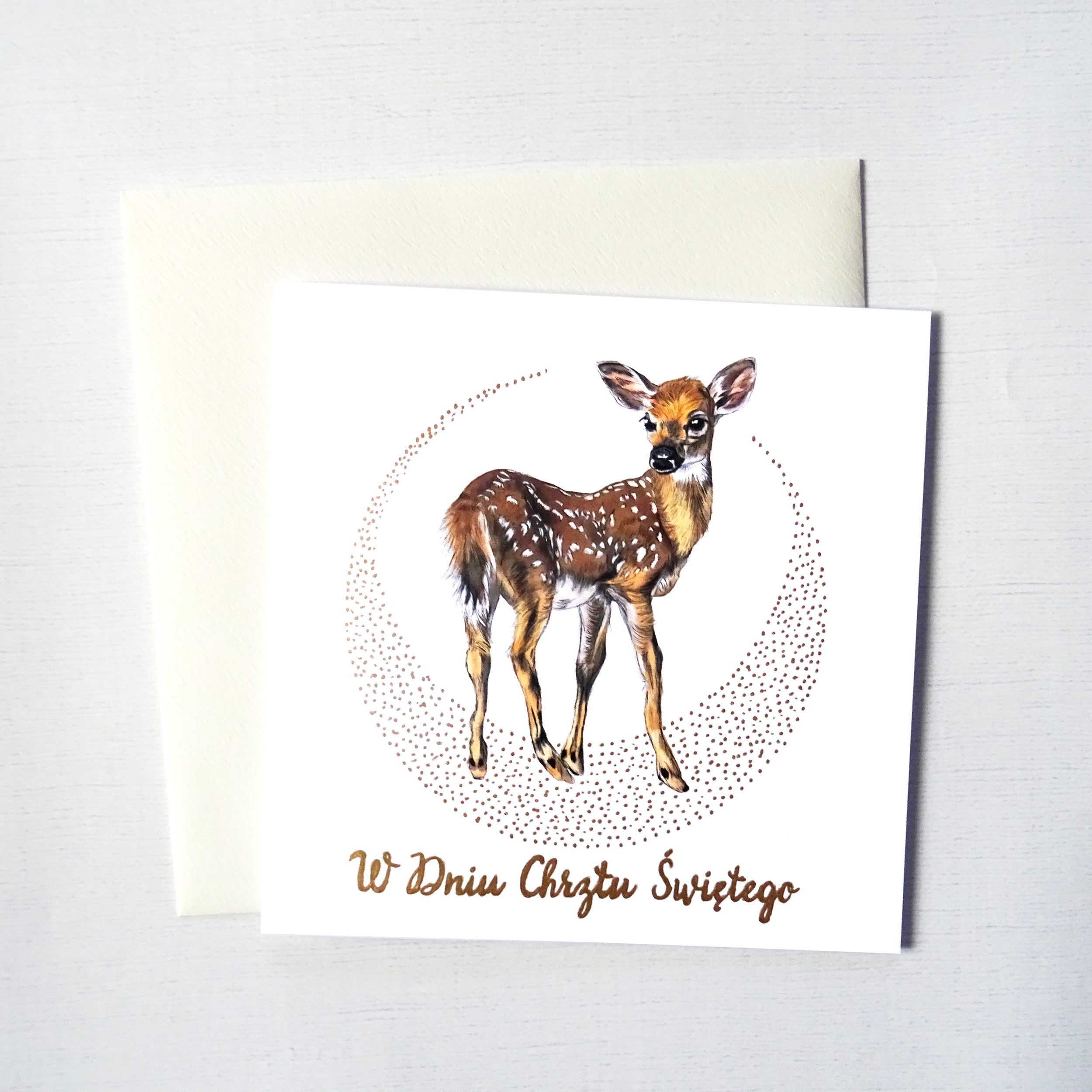 Kartka na Chrzest Święty z Sarenką – elegancka pamiątka uroczystości