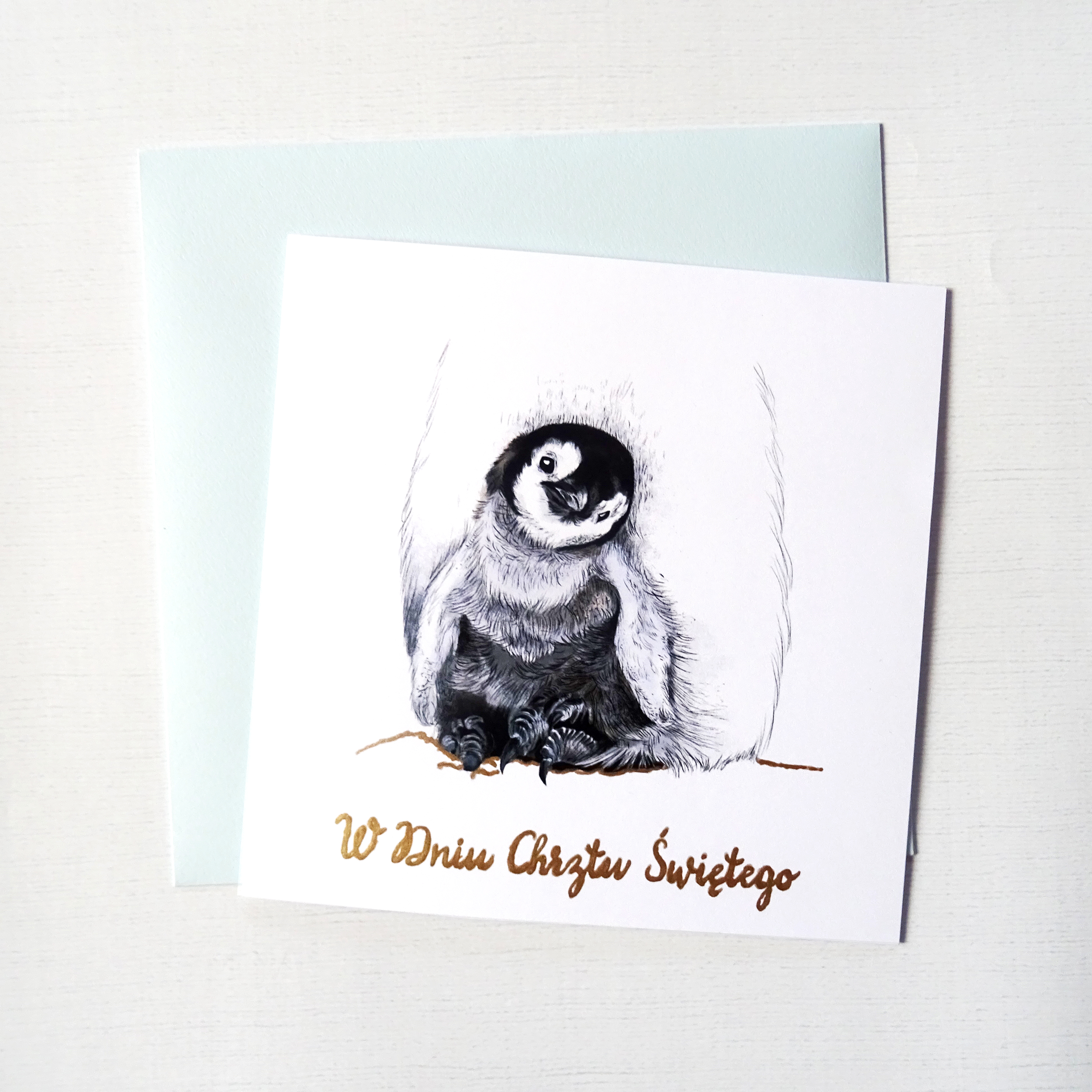 Kartka na Chrzest Święty z Pingwinkiem – wyjątkowa pamiątka uroczystości