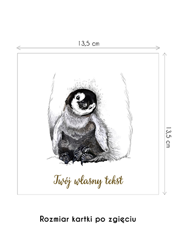 Na froncie kartki znajduje się subtelna ilustracja Małego Pingwinka stojącego u stóp mamy. Motyw ten symbolizuje miłość, ochronę i bezpieczeństwo, doskonale oddając znaczenie sakramentu Chrztu Świętego. Mały Pingwinek dodaje radosnego akcentu, sprawiając, że kartka jest idealna dla dzieci. To nie tylko kartka, to małe dzieło sztuki, które z pewnością zachwyci odbiorców i zostanie zapamiętane na długo!