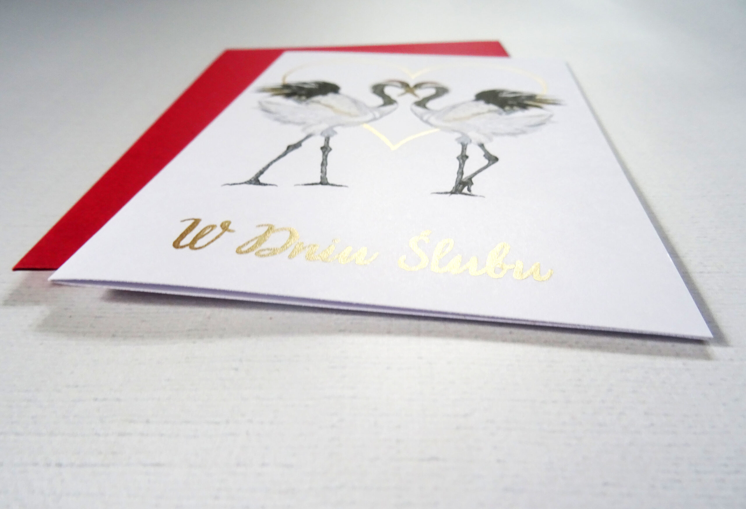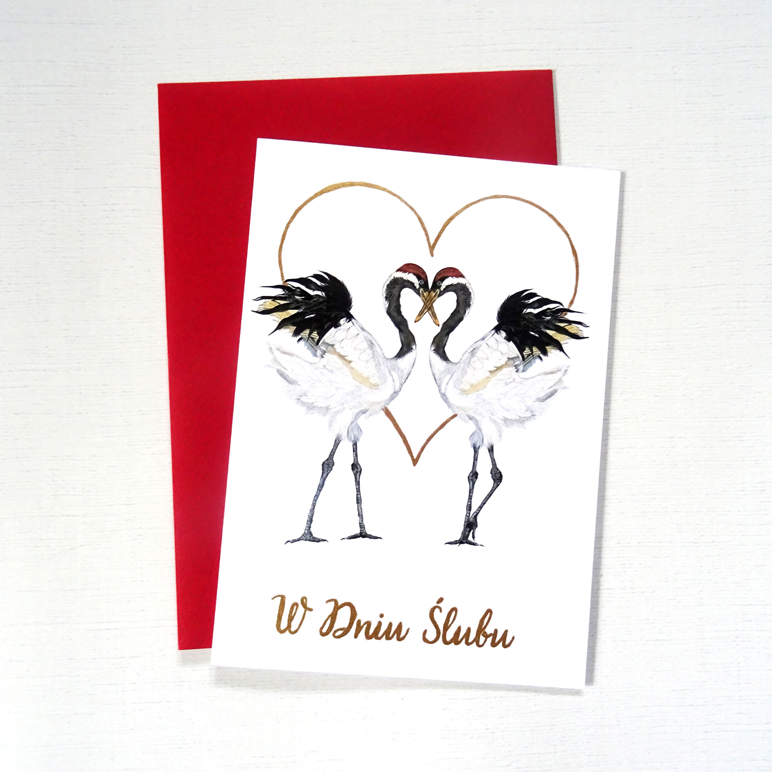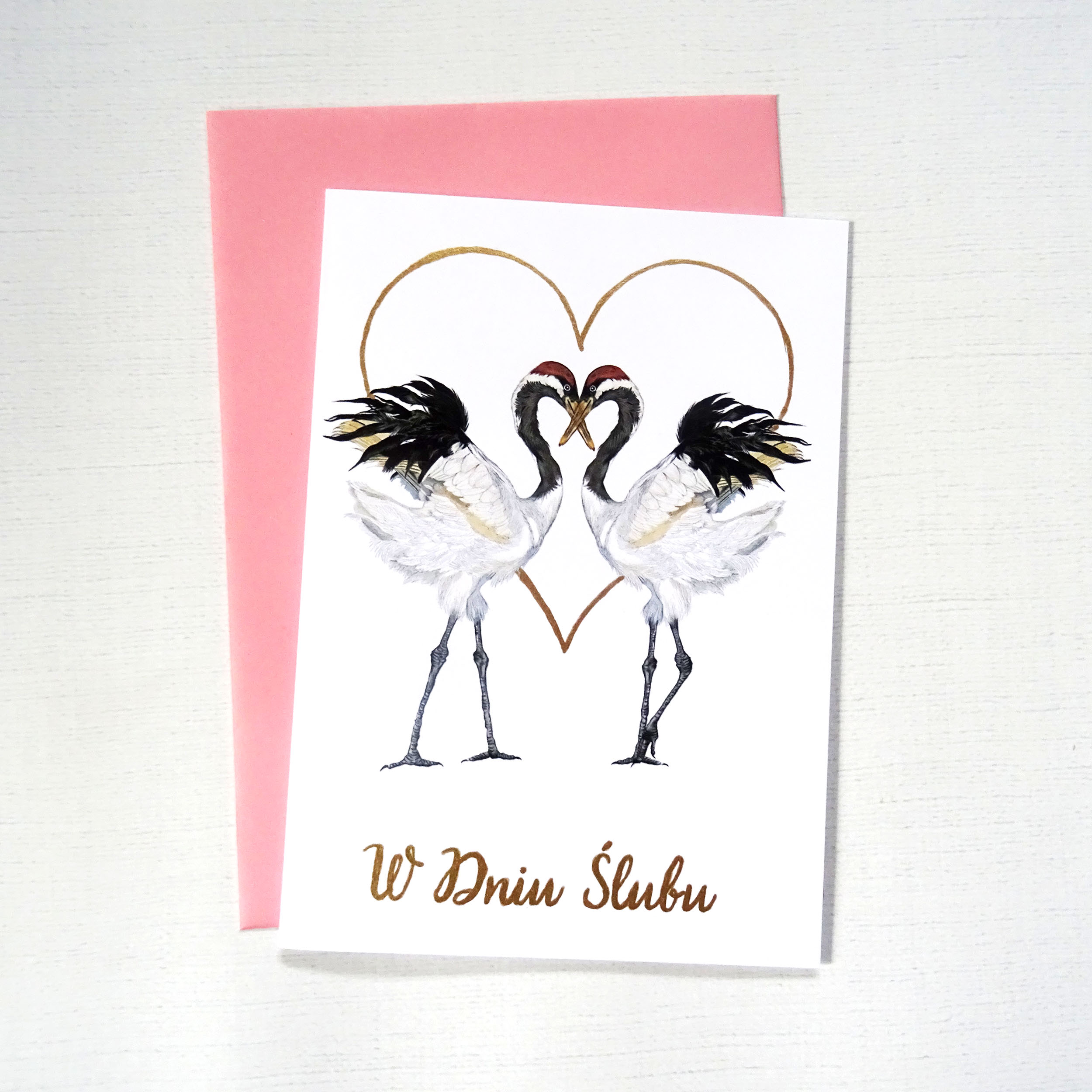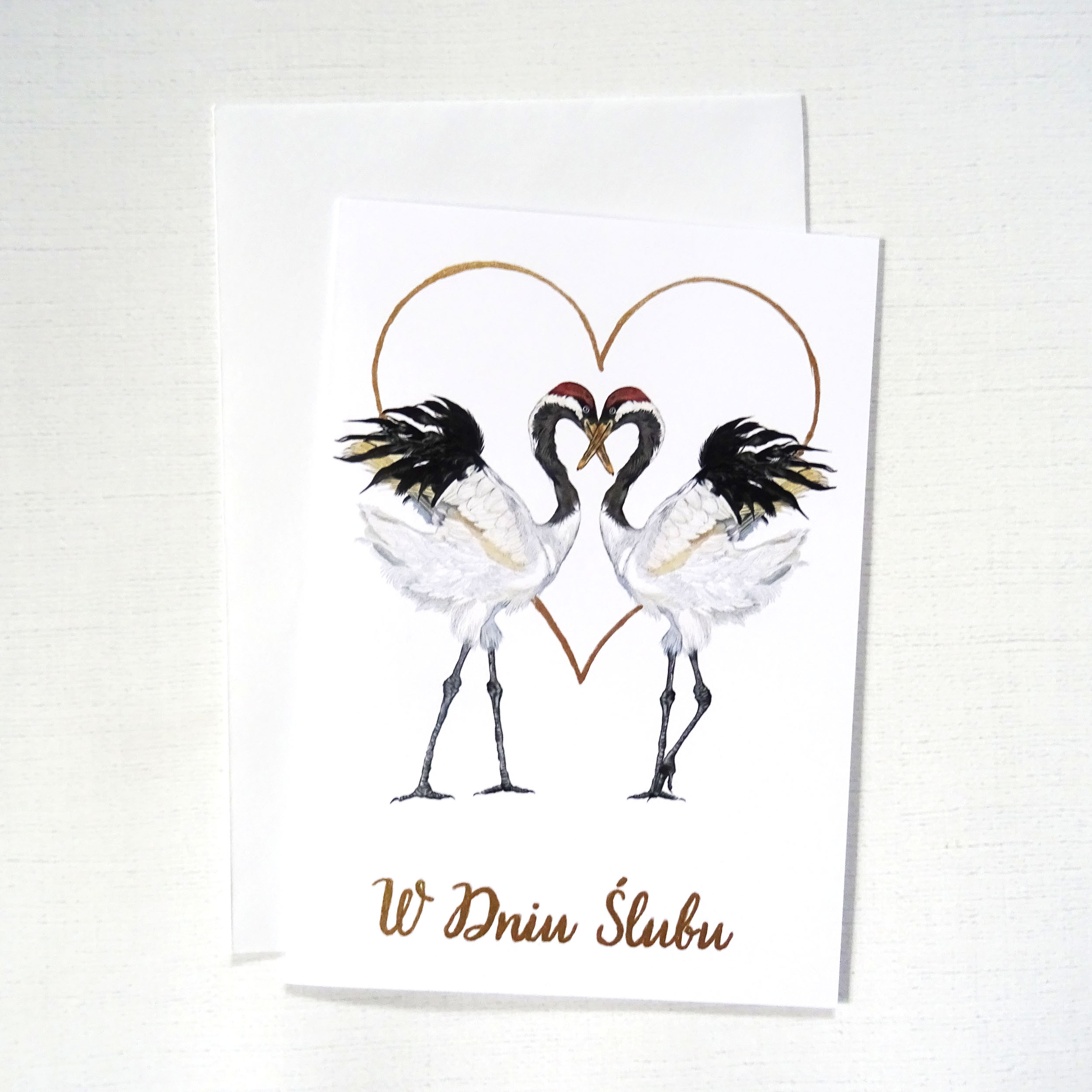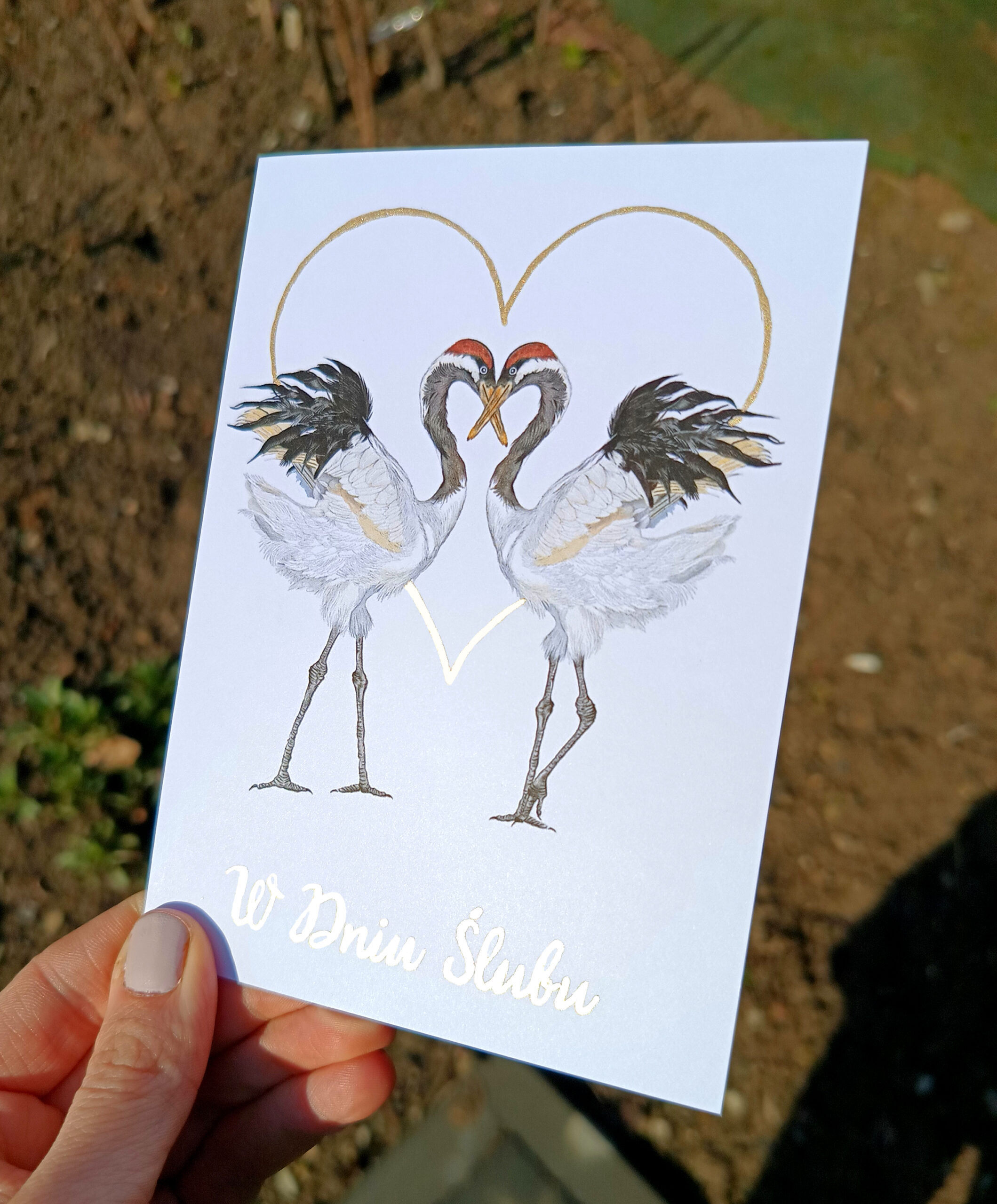 Kartka ślubna z Żurawiami – romantyczna kartka na ślub z ptakami
