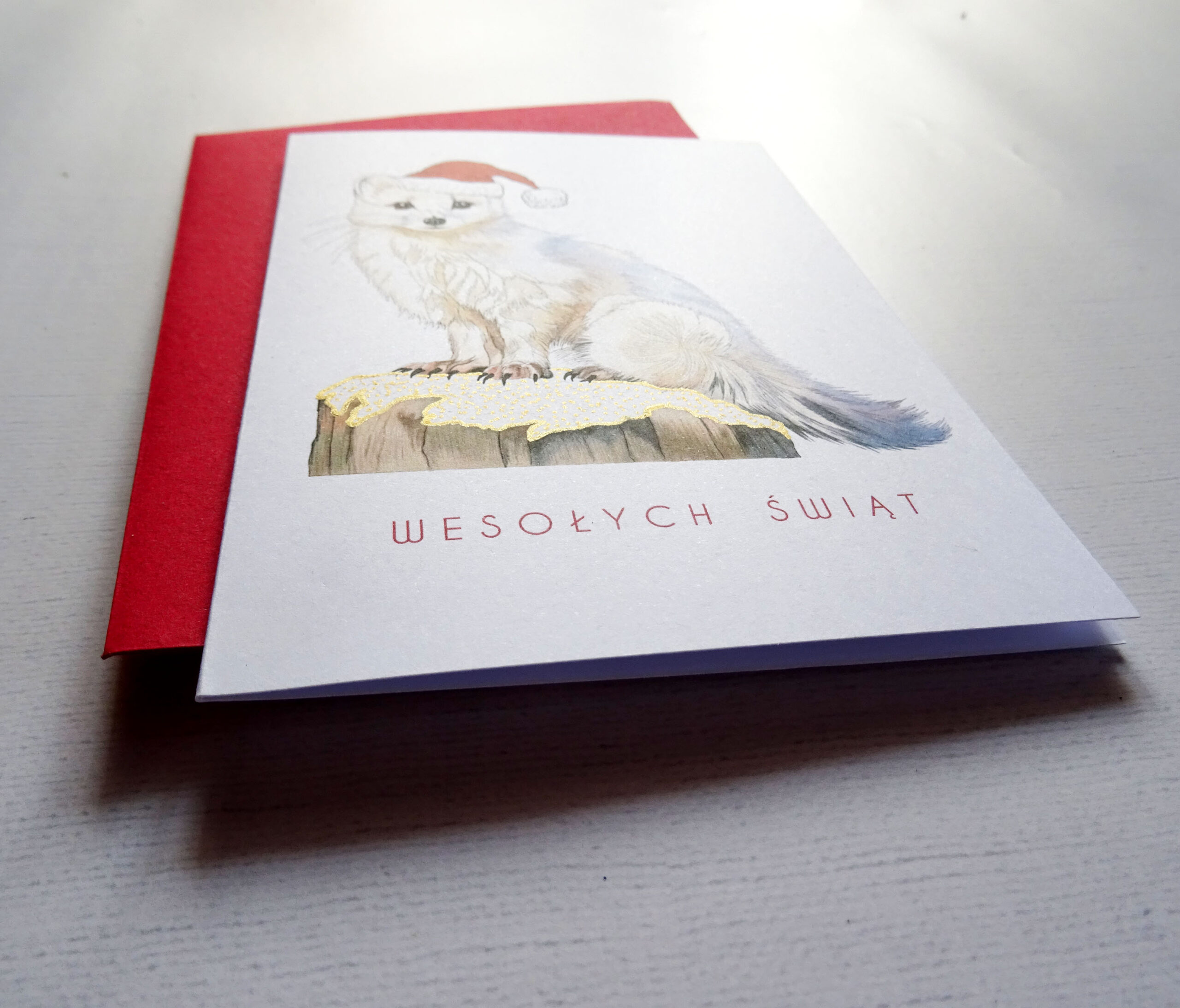 Urocza kartka świąteczna z gronostajem – Idealna na prezent świąteczny