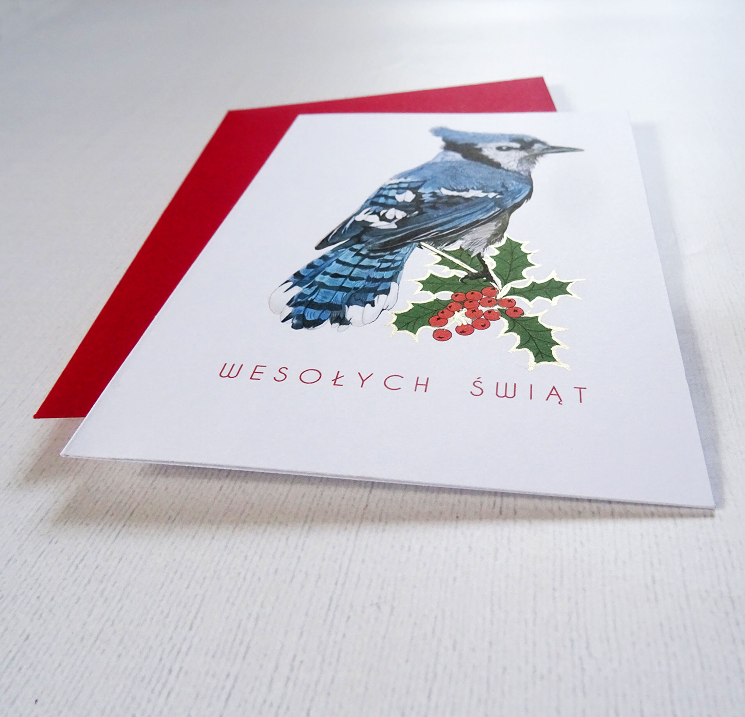 Każda kartka jest dziełem sztuki – ręcznie ilustrowana Modrosójka na gałązce ostrokrzewu z ręcznie zdobionymi złotymi akcentami przyciąga wzrok i podkreśla wyjątkowość produktu. Delikatna ilustracja wprowadza w magiczny nastrój świąt, a obecność modrosójki symbolizuje spokój, radość i ciepło zimowych dni. Druk na gładkim, białym papierze o gramaturze 250 gsm gwarantuje trwałość i premium wykończenie. Czerwona koperta w zestawie dodaje elegancji, czyniąc kartkę idealnym dodatkiem do prezentu lub samodzielnym upominkiem.