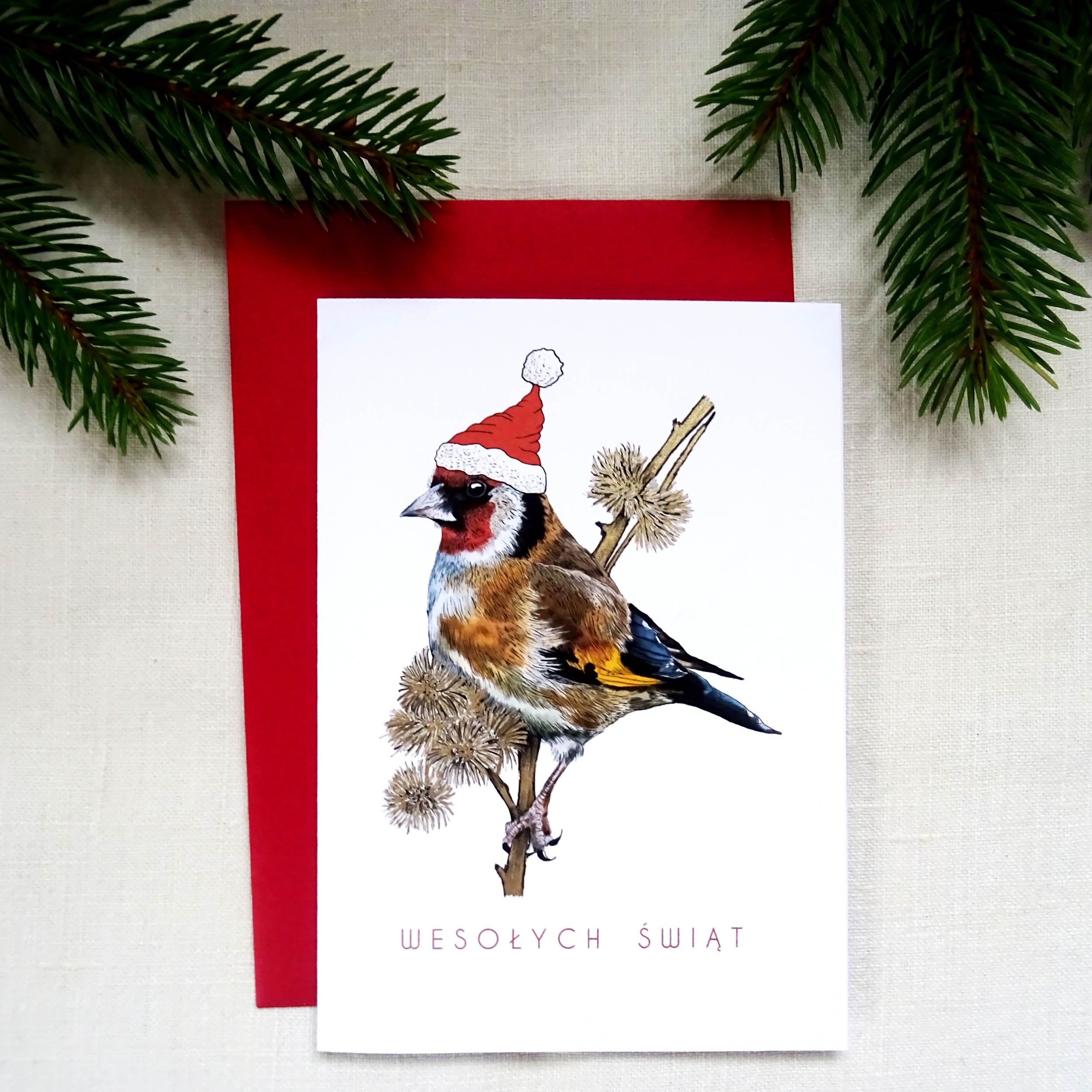 Szukasz wyjątkowej kartki świątecznej z kolorowym Szczygłem w świątecznej czapeczce? Ta ręcznie ilustrowana kartka to doskonały prezent świąteczny, który zachwyci miłośników ptaków i świątecznych dekoracji. Wprowadź magię zimy i natury do swoich świątecznych życzeń dzięki wyjątkowej kartce. To niezwykle urocza i elegancka kartka, która łączy naturalne piękno ptaków z klimatem Bożego Narodzenia.