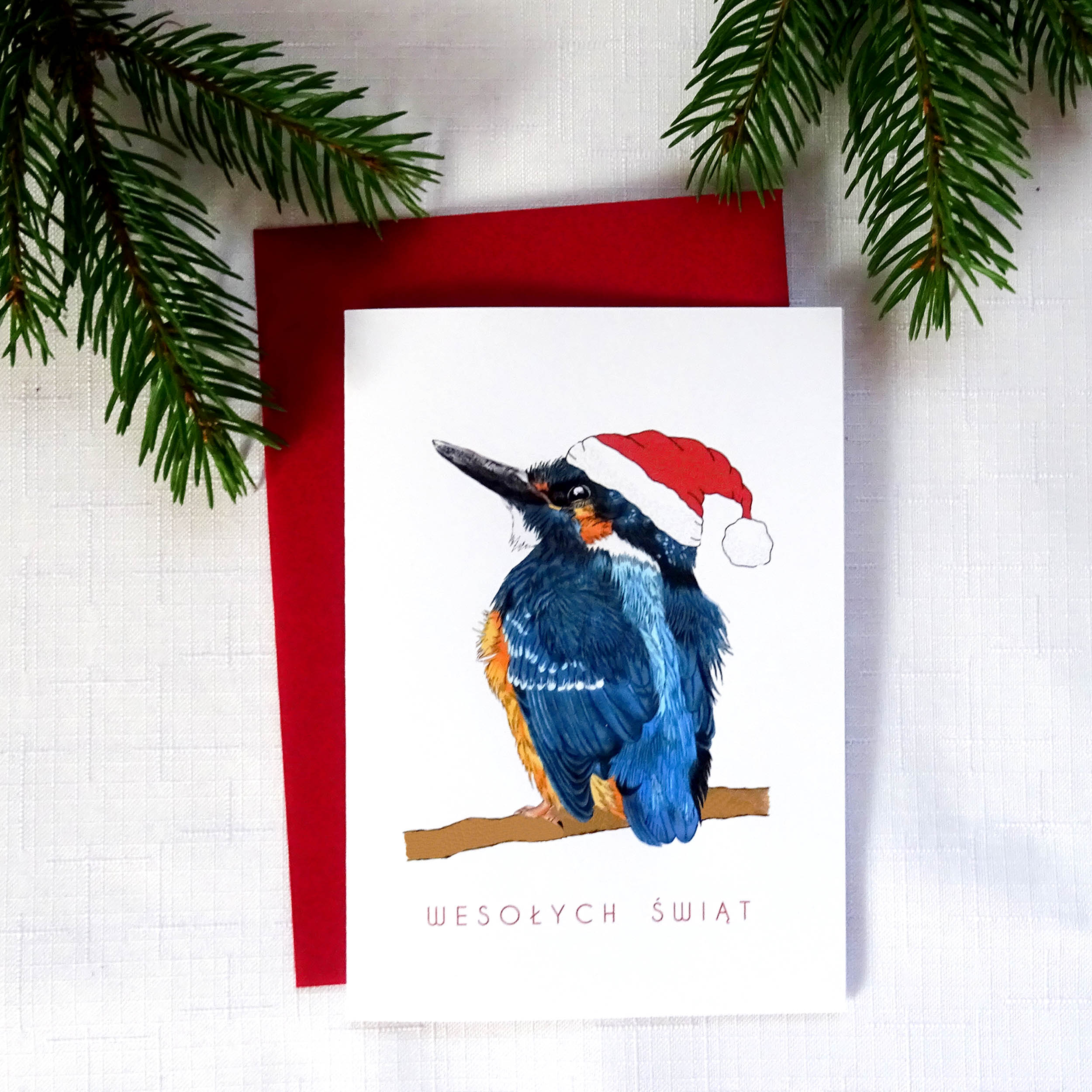 • wyjątkowy motyw zimorodka w czapeczce Mikołaja,