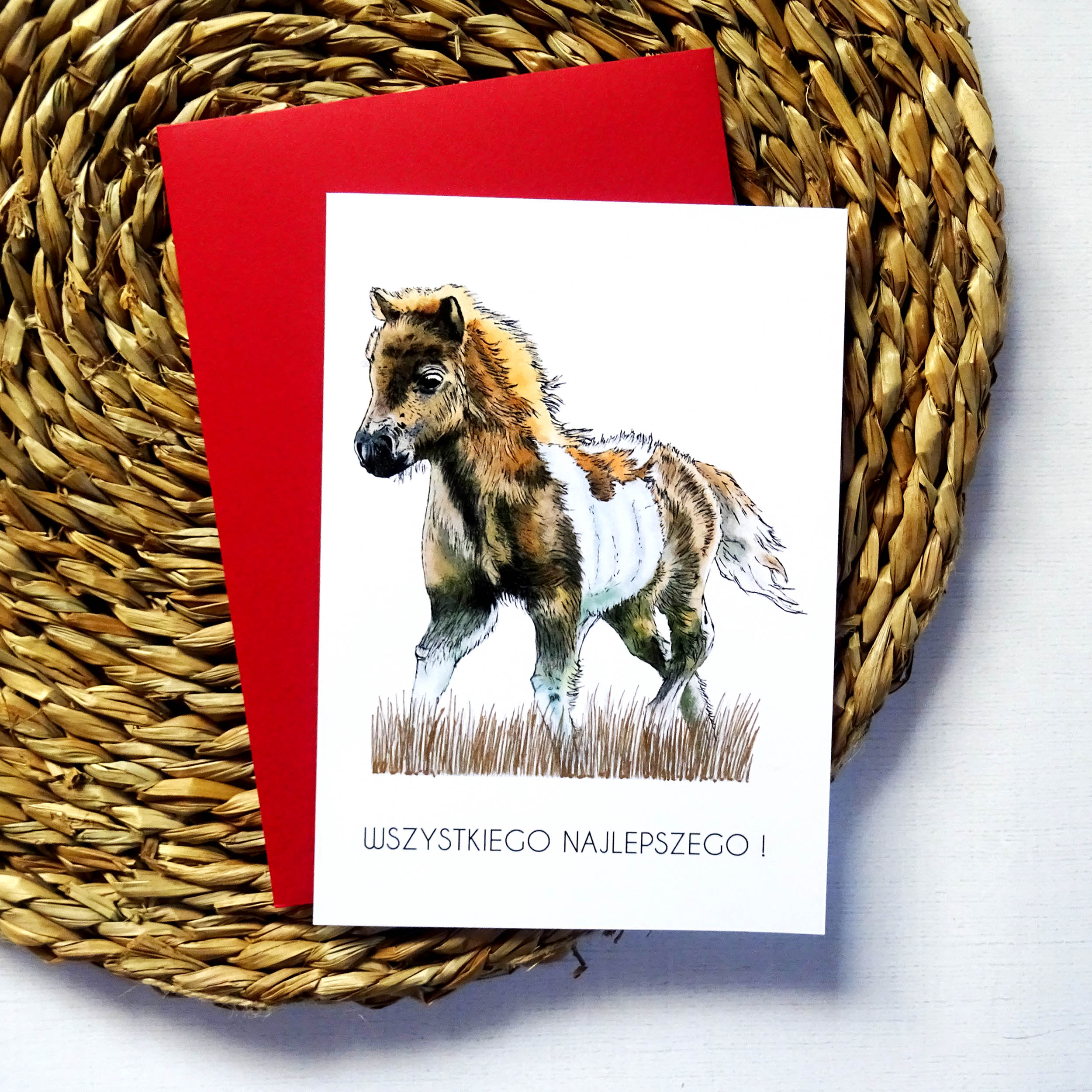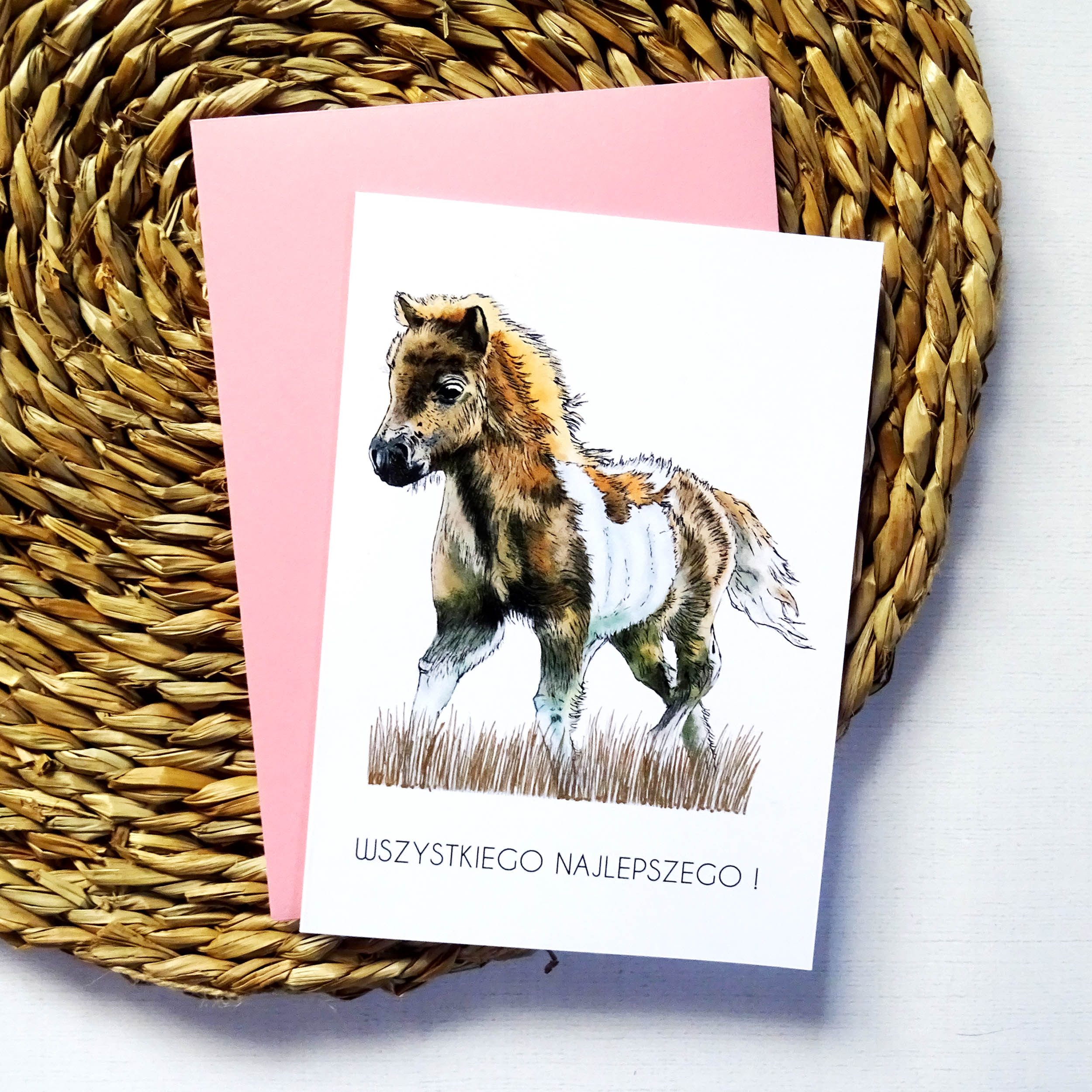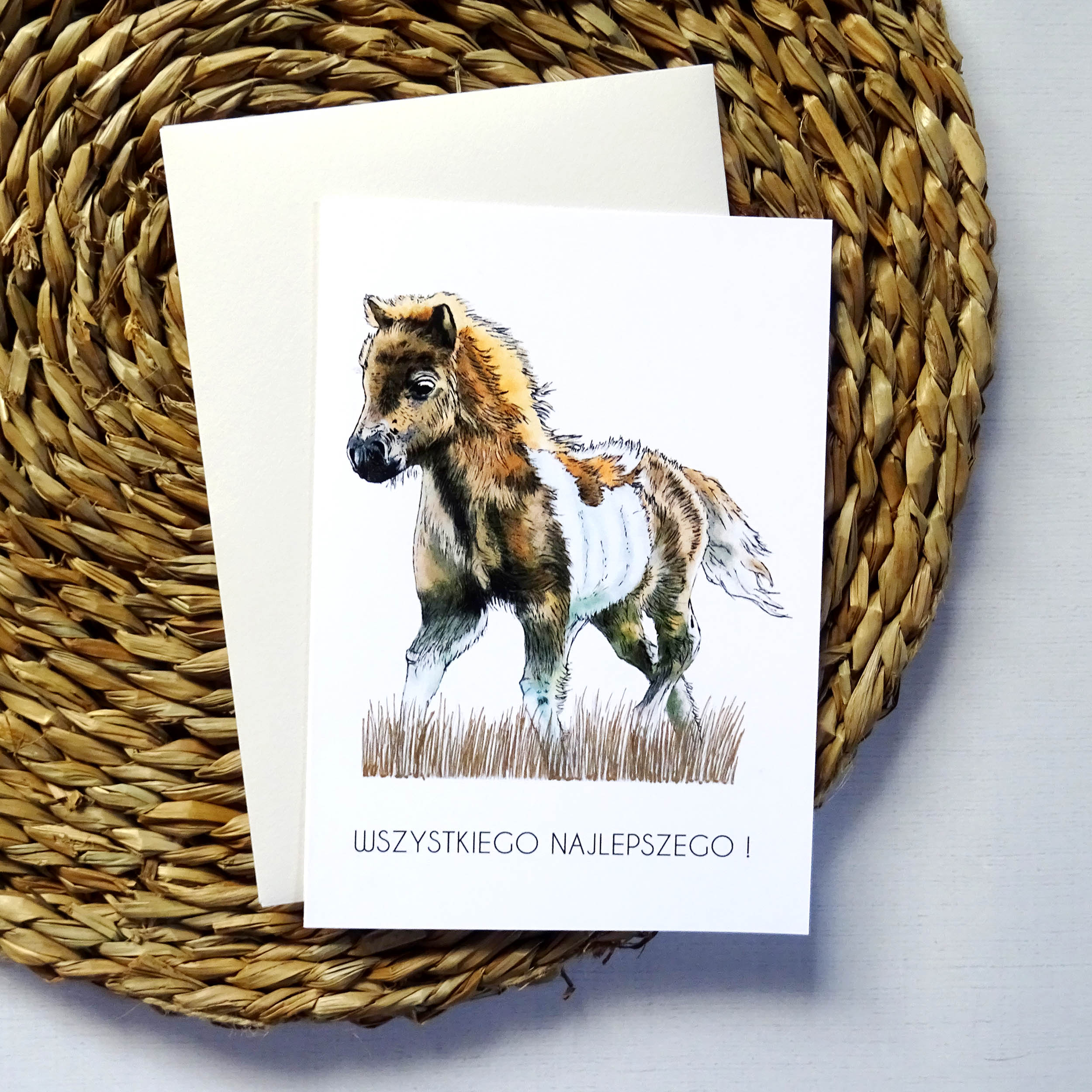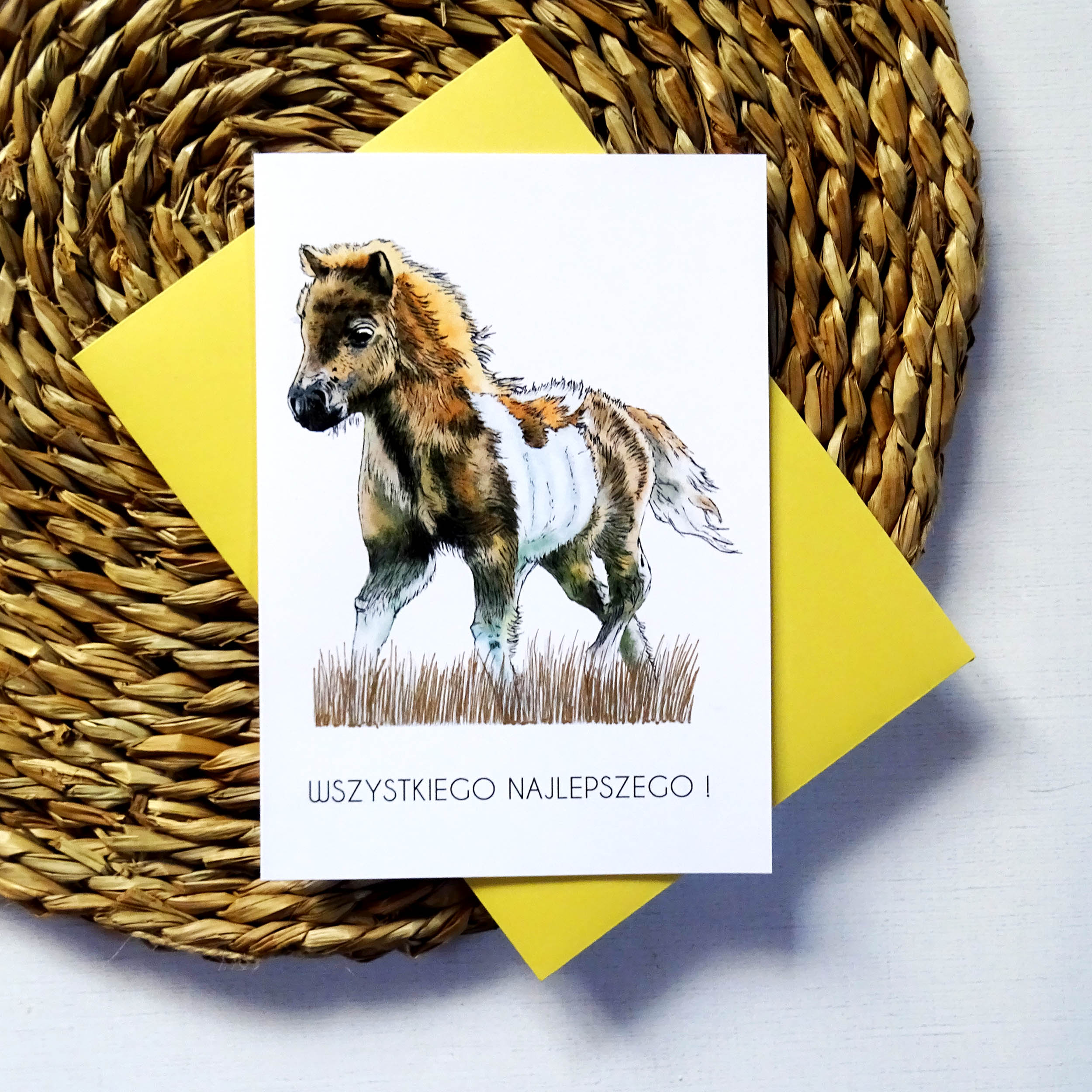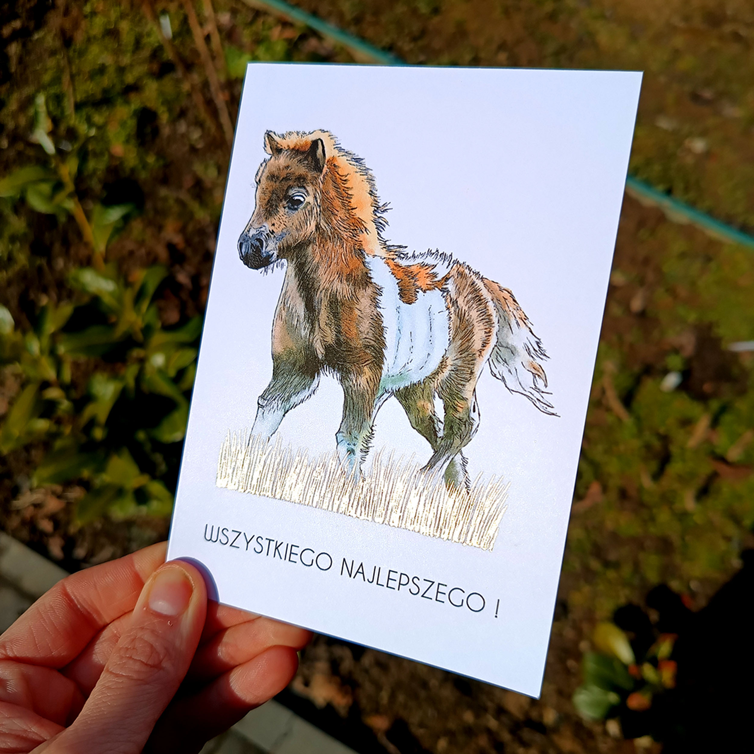 Szukasz oryginalnej kartki urodzinowej, która zachwyci solenizanta? Ta ręcznie ilustrowana kartka z Kucykiem to doskonały wybór! Uroczy konik, delikatne kolory i subtelne złote detale tworzą harmonijną i radosną kompozycję. Na froncie znajduje się elegancki napis “Wszystkiego Najlepszego”, który doskonale podkreśla okazję.
