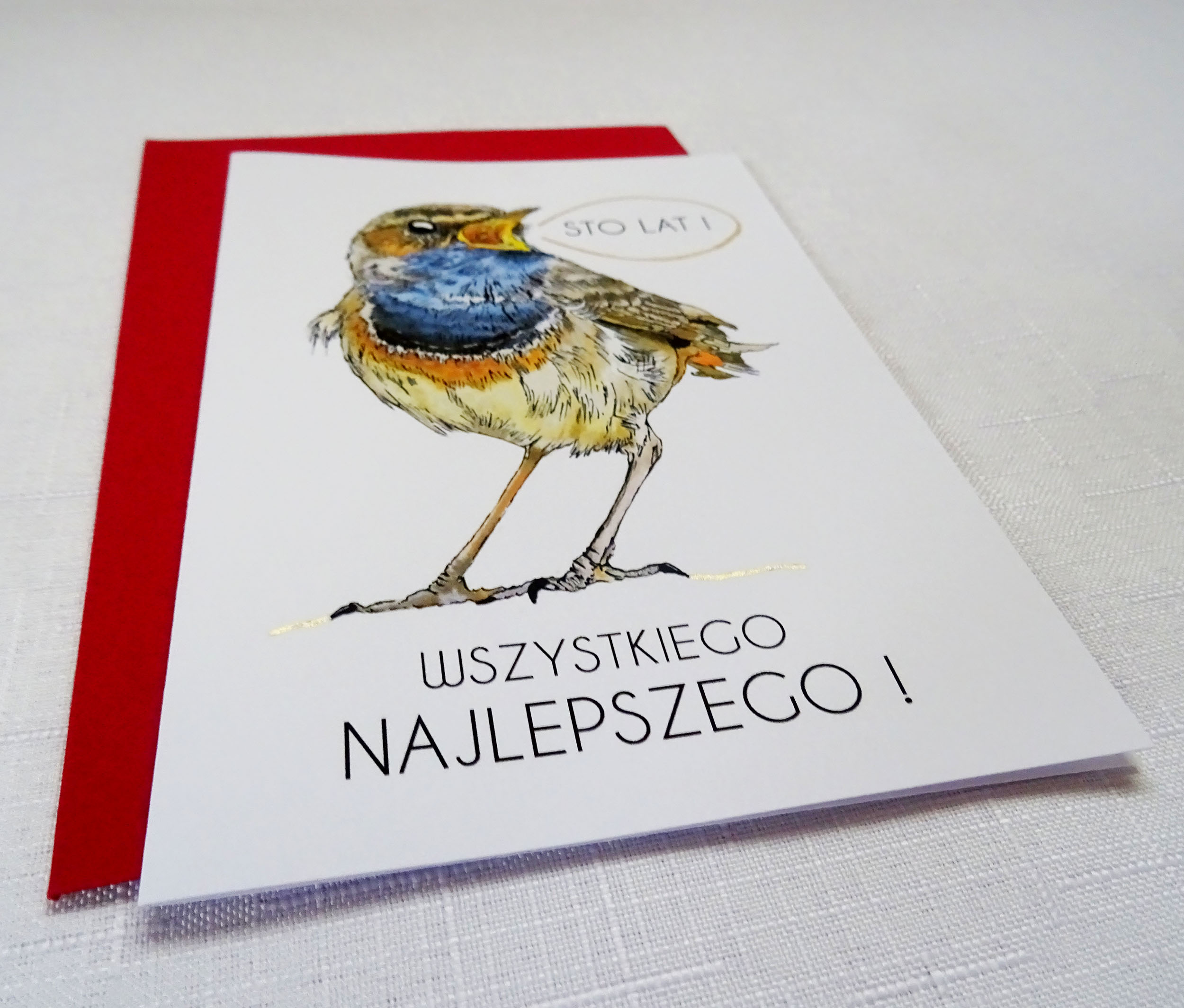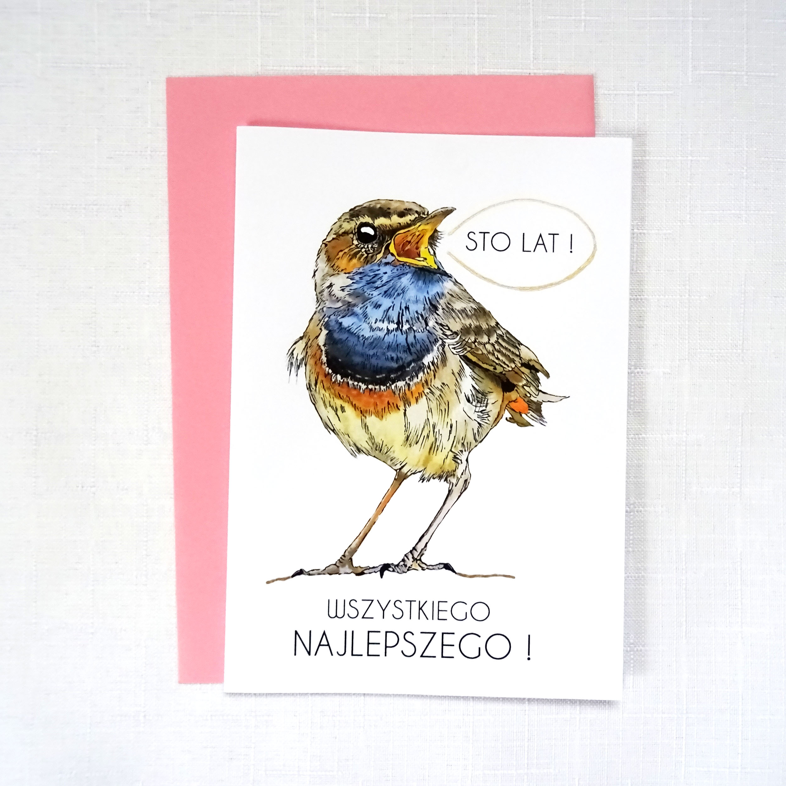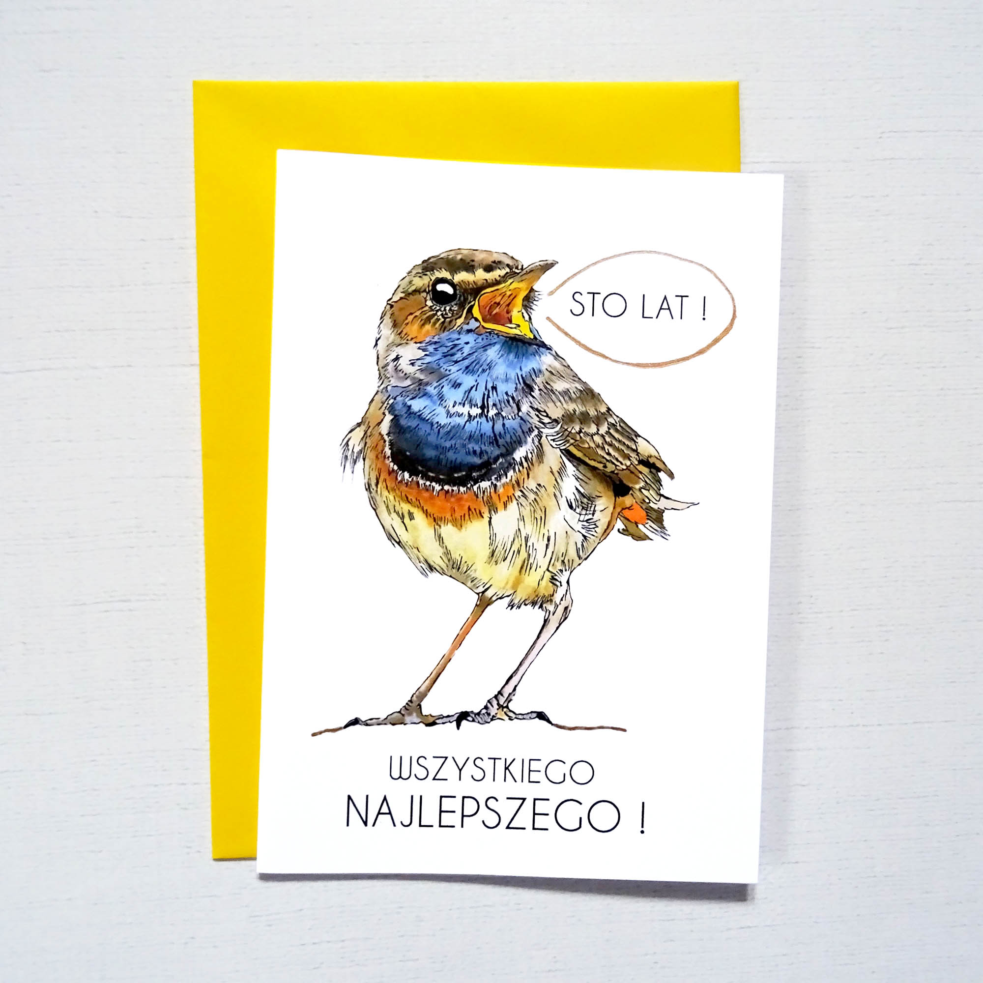 Kartka okolicznościowa wraz z Śpiewającym Podróżniczkiem idealnie sprawdzi się jako prezent z okazji Urodzin dla każdego, zwłaszcza miłośnika ptaków.